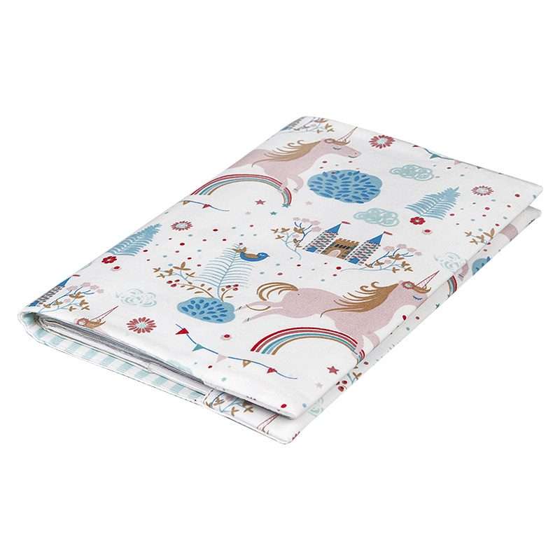 Χειροποίητη Υφασμάτινη Θήκη με μοτίβο ”Στην χώρα των Μονόκερων”, για το βιβλιάριο υγείας του μικρού σας. Εσωτερικά είναι επενδεδυμένη με μέντα ριγέ ύφασμα. Σας παρέχουμε τη δυνατότητα να κάνετε τη θήκη για το βιβλιάριο μοναδική, δημιουργώντας ένα ξεχωριστό κέντημα της επιλογής σας.