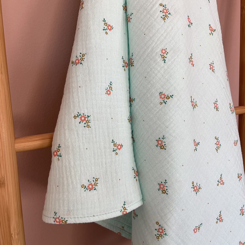 Βαμβακερή μουσελίνα με ρομαντικό print από πολύχρωμα λουλούδια. Διαθέσιμη σε δύο διαστάσεις, για να επιλέξετε εκείνη που σας εξυπηρετεί.