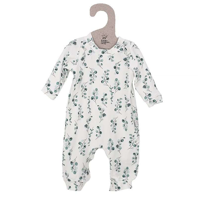 Ολόσωμο φορμάκι για μωρά, με μακρύ μανίκι με ιδιαίτερο μοτίβο Flowers Dusty Green!