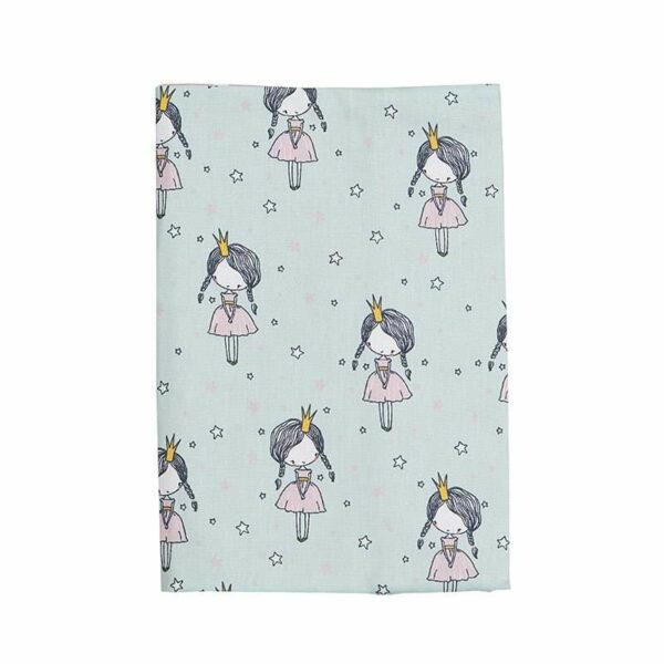 Χειροποίητη υφασμάτινη κασετίνα με σχέδιο Μικρές Πριγκίπισσες. Εσωτερικά είναι επενδεδημένη με μέντα ριγέ ύφασμα. Κλείνει με φερμουάρ λευκού χρώματος.