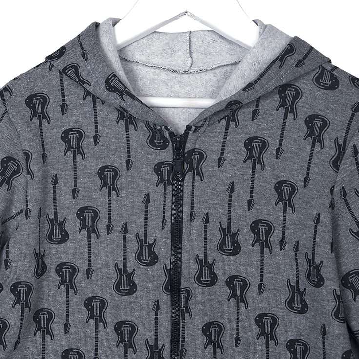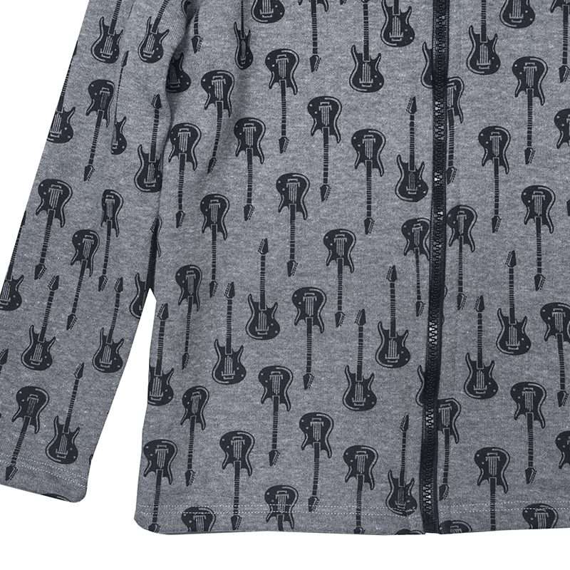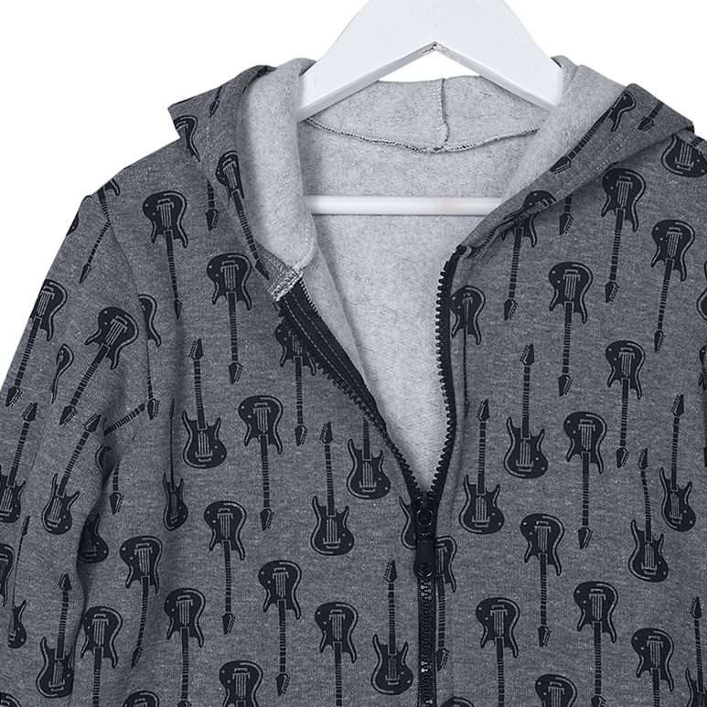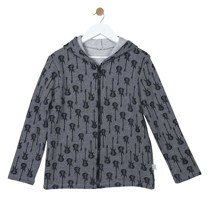 Παιδική μακρυμάνικη ζακέτα με κουκούλα και μοτίβο Κιθάρες. Κλείνει με