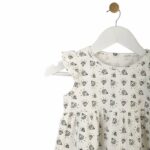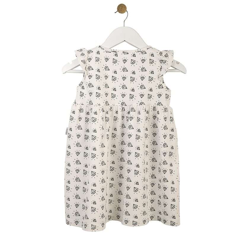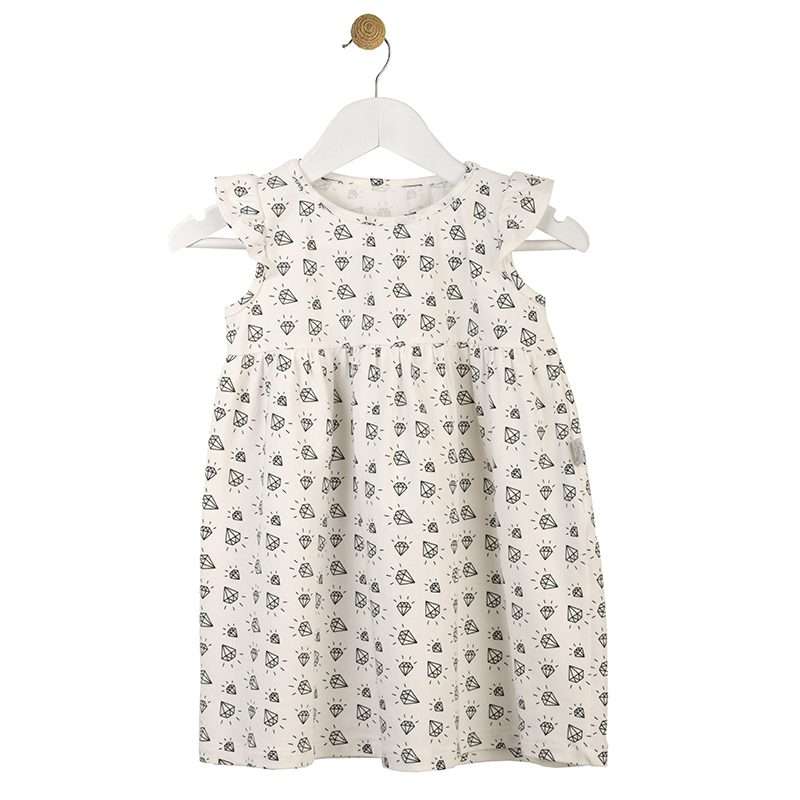 Παιδικό φόρεμα για κορίτσια με μοτίβο Διαμαντάκια, σε αμπίρ γραμμή. Το μικροσκοπικό μανικάκι πεταλούδα, του δίνει ένα ιδιαίτερα ρομαντικό στίλ. Δροσερό και άνετο για τους καλοκαιρινούς μήνες. Σύνθεση : Σύνθεση: 95% βαμβάκι – 5% ελαστάν.