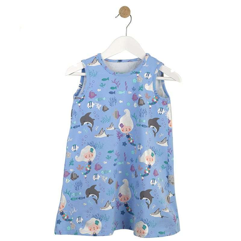 Παιδικό φόρεμα για κορίτσια με μοτίβο Γοργόνες, σε άλφα γραμμή. Ένα εύκολο, δροσερό και άνετο φορεματάκι για τους καλοκαιρινούς μήνες.