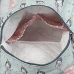 λευκό καπιτονέ ύφασμα. Μπορεί να κρατηθεί στο χέρι ή στον ώμο. Το χερούλι του