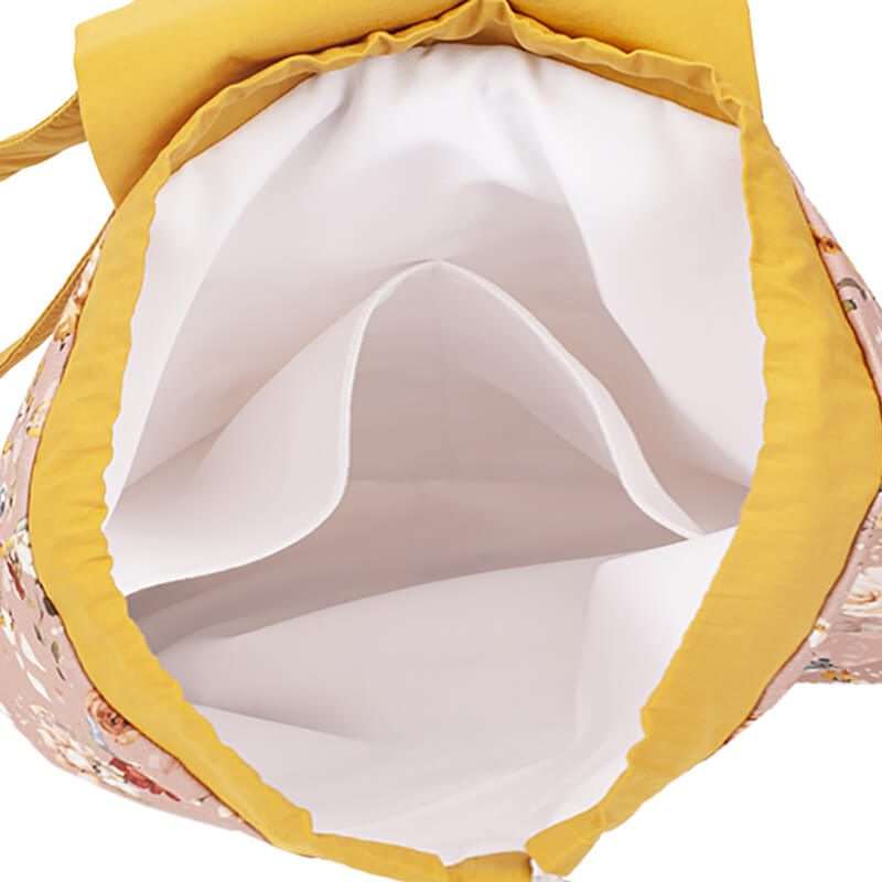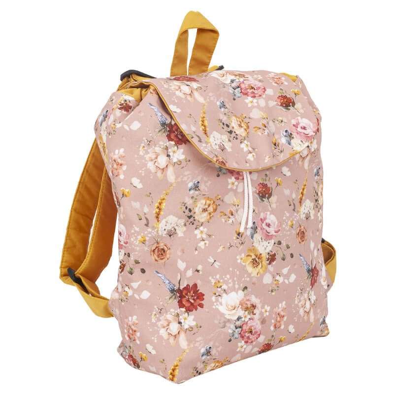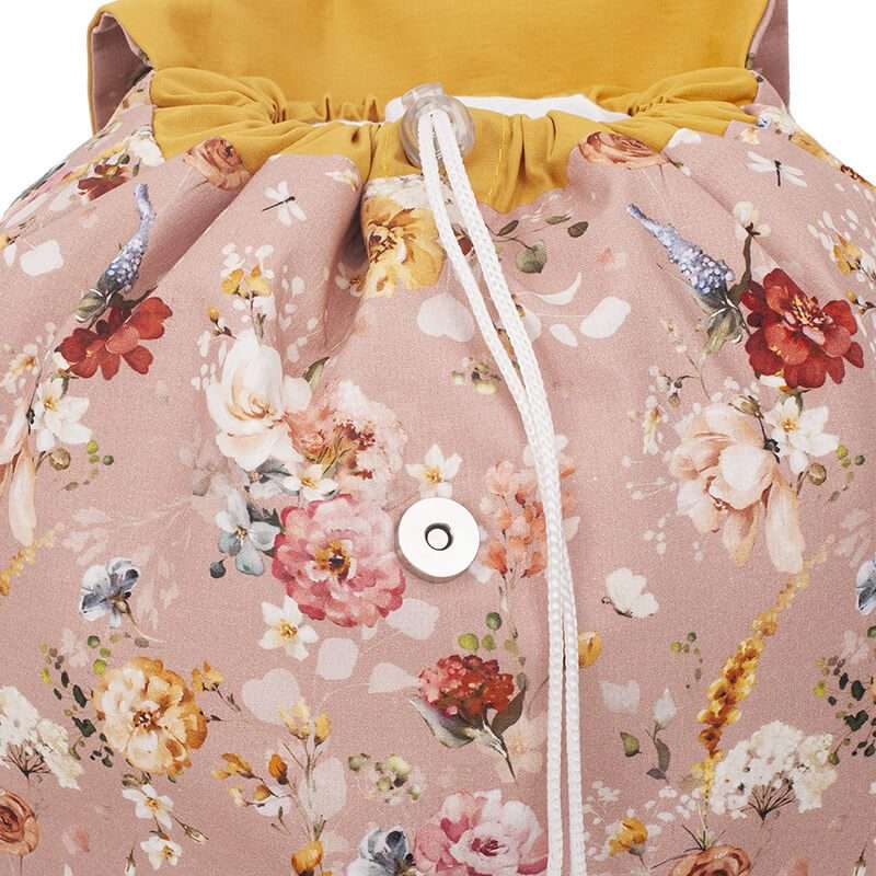 Χειροποίητο υφασμάτινο σακίδιο πλάτης για κορίτσια με μοτίβο Golden Flowers.