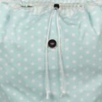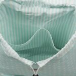 είναι επενδεδυμένο με ριγέ ύφασμα στο χρώμα της μέντα. Το πάνω μέρος μαζεύει με