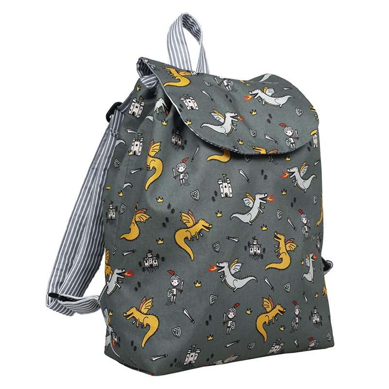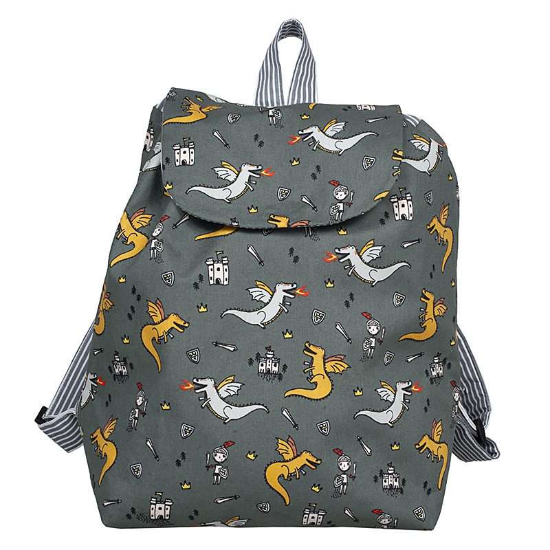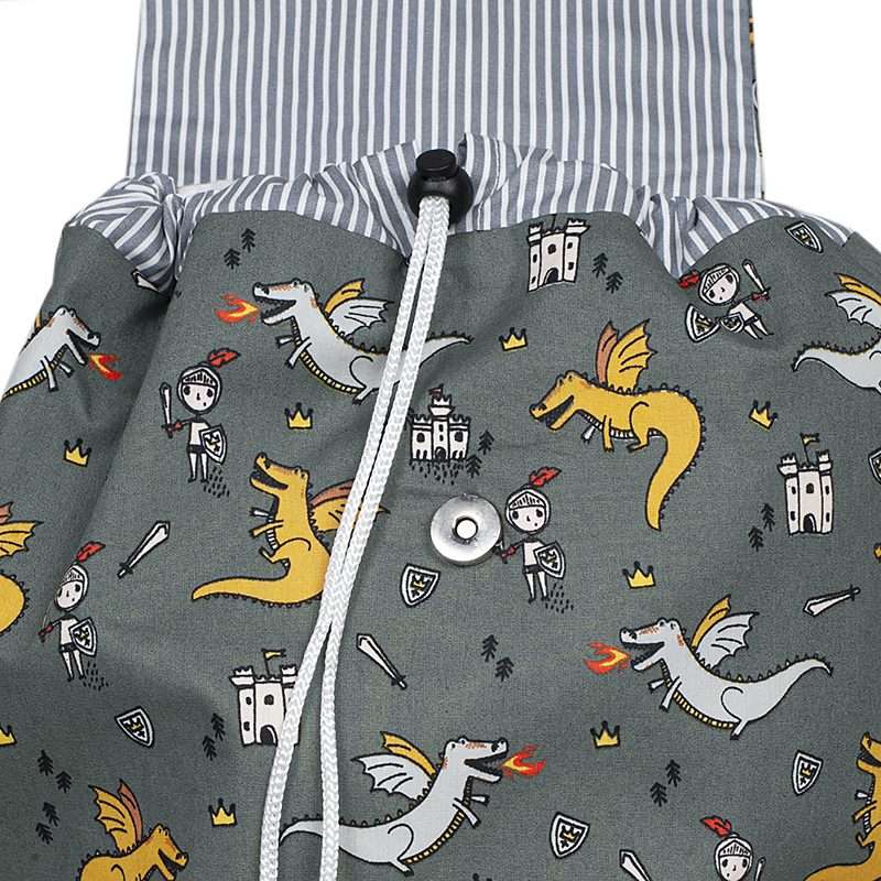 Χειροποίητο υφασμάτινο σακίδιο πλάτης για κορίτσια με μοτίβο Fighting Dragons Green.