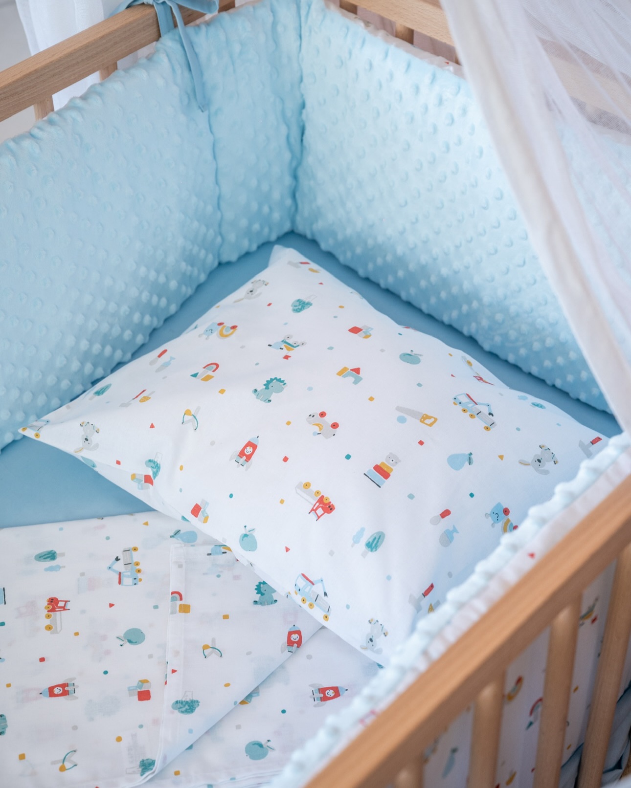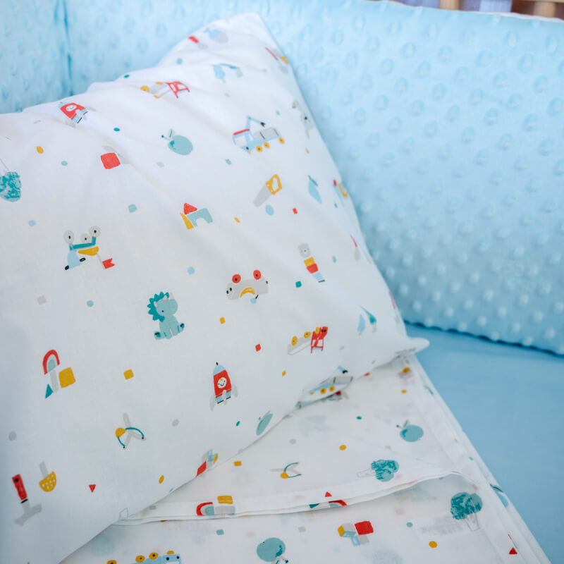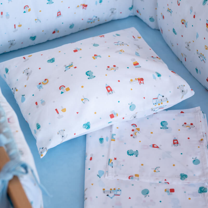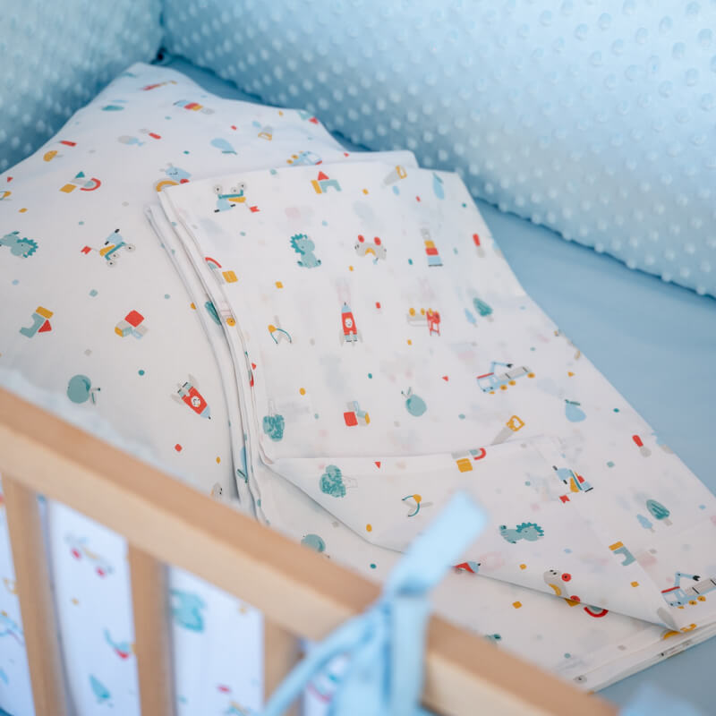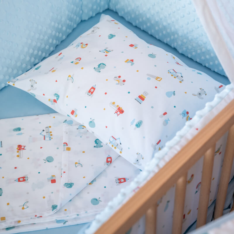 Σετ σεντόνια κούνιας 3 τεμαχίων από οργανικό βαμβάκι Oeko-Tex με Toys Boy print