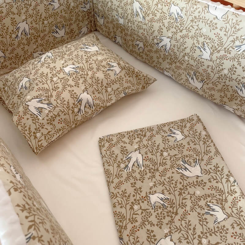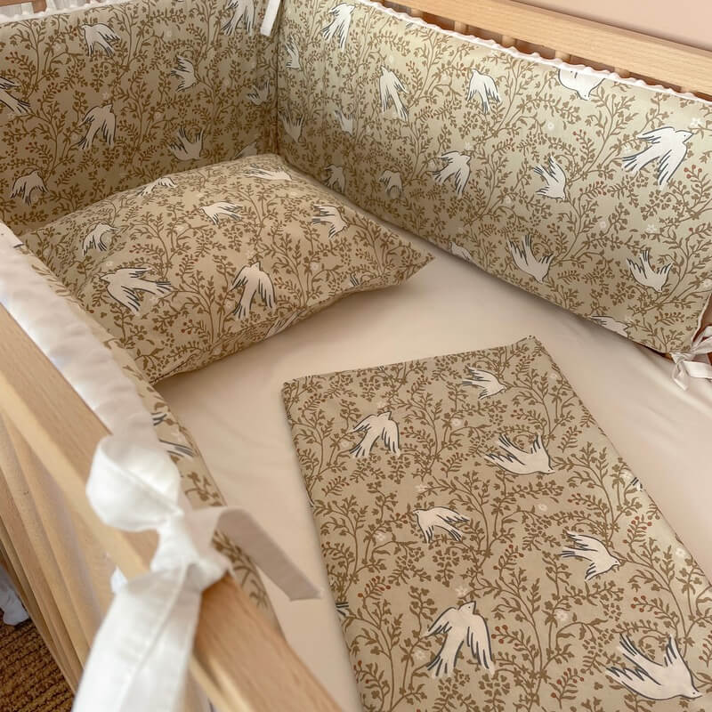 Σετ σεντόνια κούνιας 3 τεμαχίων από βαμβάκι Oeko-Tex με Swallow print