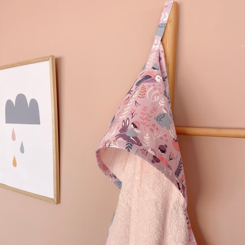 Βαμβακερή μπουρνουζοπετσέτα, κατάλληλη για βρέφη και μωρά. Με κουκούλα και πιαστράκι που διευκολύνει το κρέμασμά της.