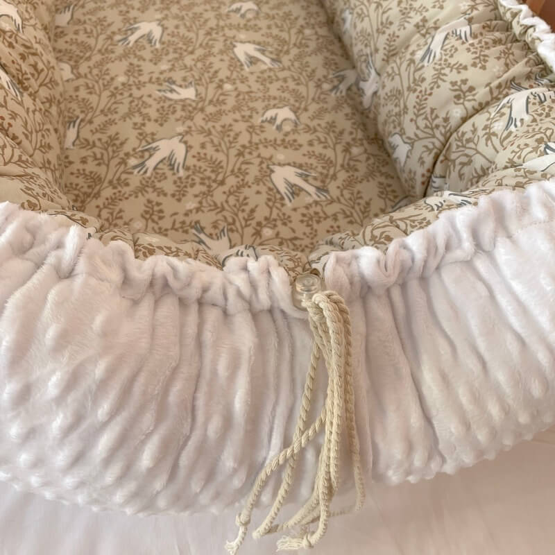 Διαθέτει μαλακά πλαϊνά και χερούλια για να μπορείτε να τη μεταφέρετε και να την αποθηκεύετε με ευκολία. Το αντιαλλεργικό αφρώδες στρωματάκι της αφαιρείται, ανοίγοντας το κρυφό φερμουάρ στο κάτω μέρος τη φωλιάς. Έτσι, μπορείτε να πλένετε τη φωλιά στο πλυντήριο, κάθε φορά που το κρίνετε απαραίτητο.