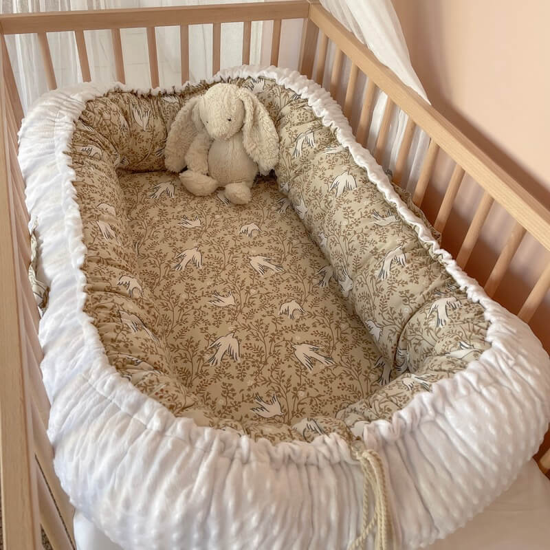 Βαμβακερή φωλίτσα με minimal unisex print από Χελιδόνια, για βρέφη από 0 έως 6 μηνών. Διαθέτει μαλακά πλαϊνά και αντιαλλεργικό αφρώδες στρωματάκι.