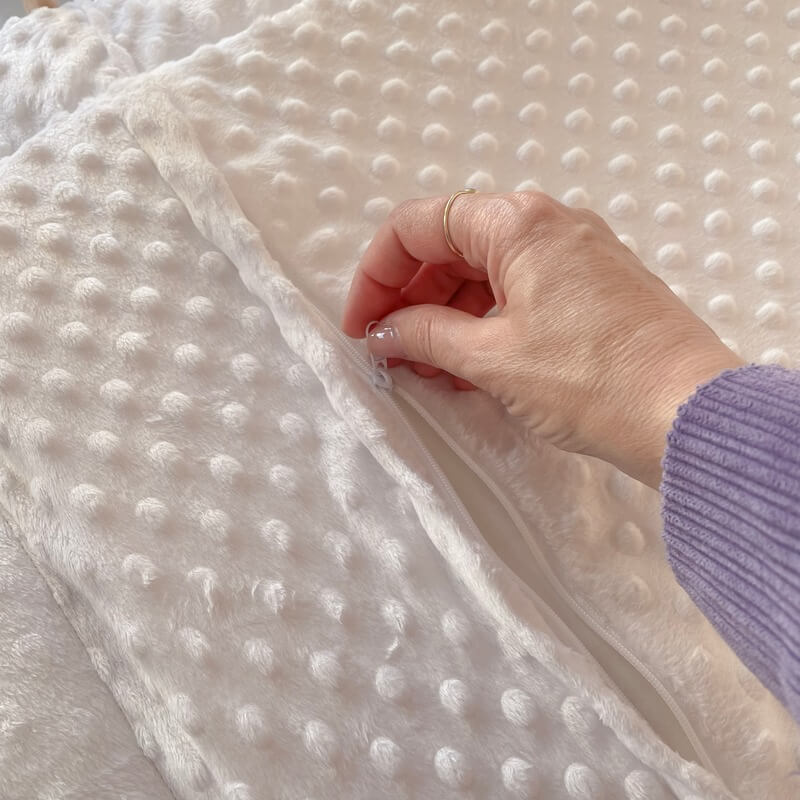– να πλένεται στο πλυντήριο, σε θερμοκρασία 30°C, σε πρόγραμμα για απαλά / ευαίσθητα ρούχα.