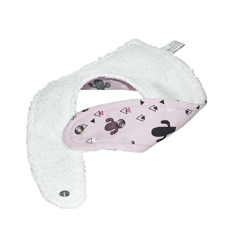 Χειροποίητη Σαλιάρα-Μπαντάνα με μοτίβο Κάκτοι σε ροζ φόντο. Από Oeko-Tex βαμβακερό ύφασμα, επενδεδυμένο στην πίσω του πλευρά από βαμβακερό πετσετέ ύφασμα, κατάλληλο για να απορροφά την υγρασία. Σταθεροποιείται