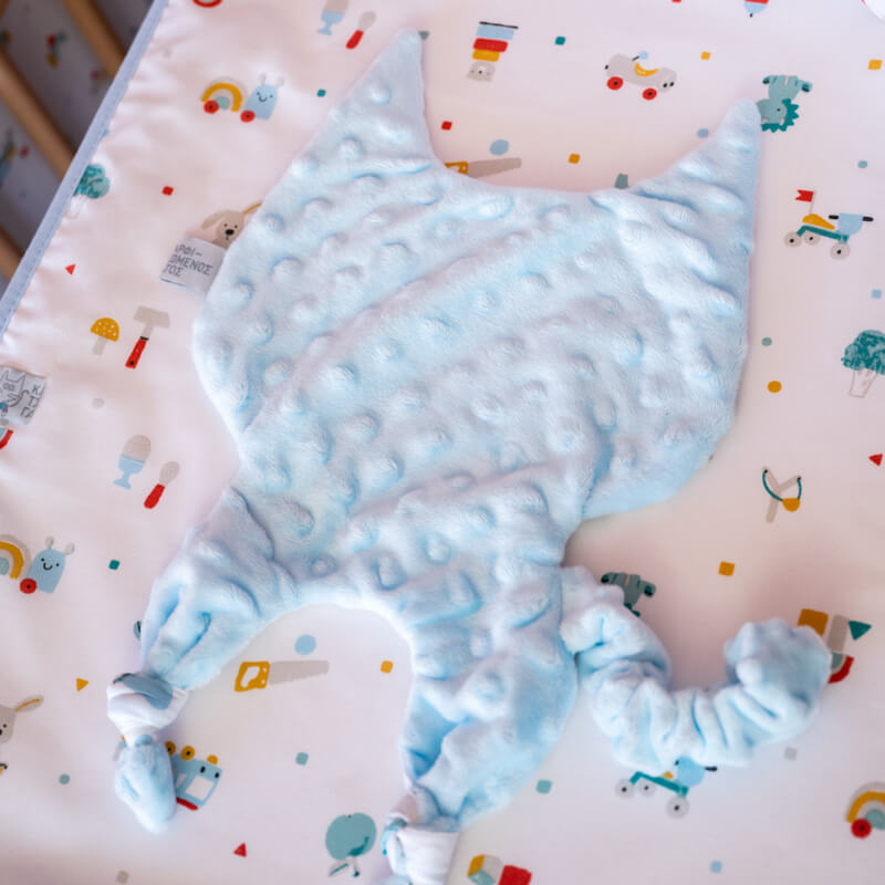 Το πανάκι παρηγοριάς, ή γνωστό σε όλους μας ως “νάνι”, είναι χειροποίητο και ραμμένο με δύο διαφορετικά υφάσματα στις πλευρές του. Από τη μία του πλευρά, έχει βαμβακερό ύφασμα με πιστοποίηση Oeko-Tex 100 και από την άλλη, απαλό βελουτέ minky με ανάγλυφο σχέδιο.