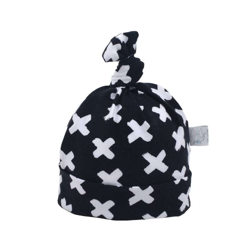 Βρεφικό υφασμάτινο βαμβακερό σκουφάκι με διακοσμητικό κόμπο στο πάνω μέρος.