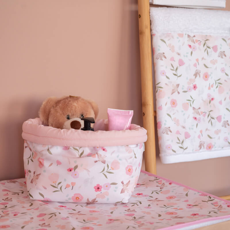 Υφασμάτινο καλάθι αποθήκευσης για την αλλαξιέρα από βαμβάκι Oeko-Tex με Pretty Flowers print